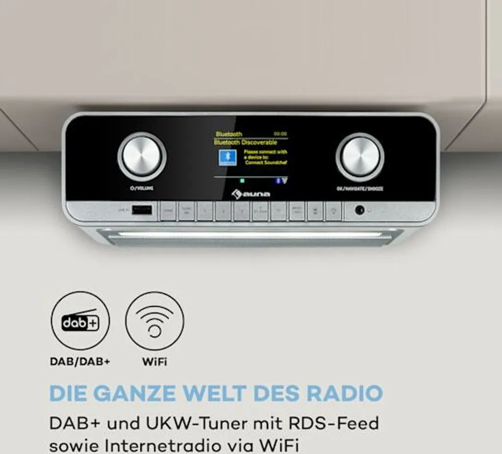 Schreibe die erste Rezension für „Auna Connect Soundchef MKII Küchen-Unterbauradio, Bluetooth Freisprech-Einrichtung, Ambientelicht, 2,4″ TFT-Farbdisplay, WiFi, Spotify Connect, DAB+/UKW/Internetradio, AUX-In, Fernbedienung“ Antwort abbrechen